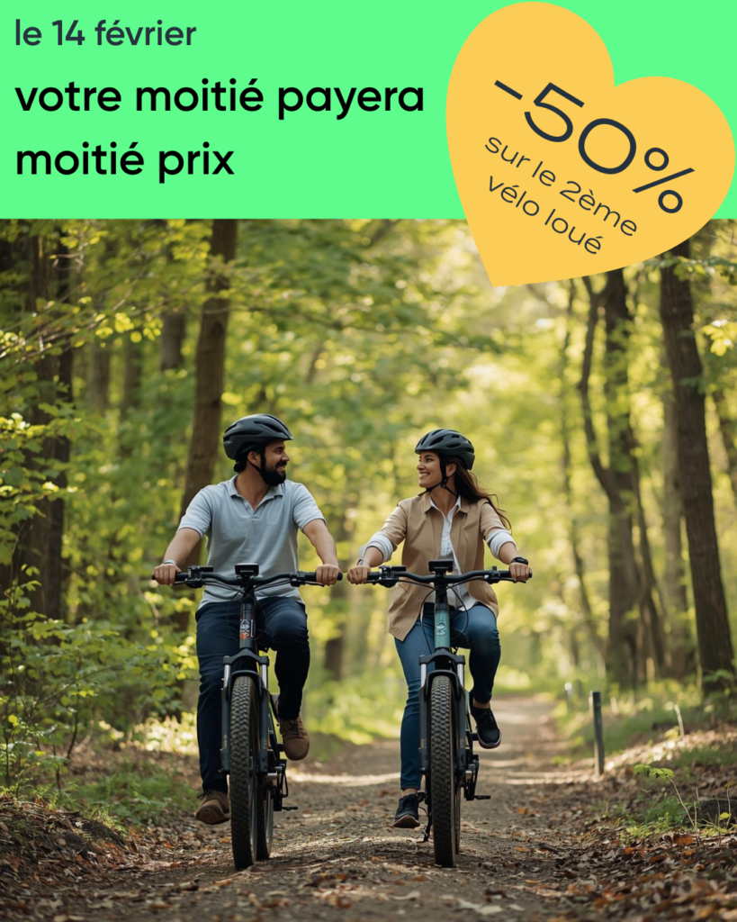 Le 14 février profitez d’une offre à partager à 2! Pour 2 vélos loués, la location du second vélo est à -50%.