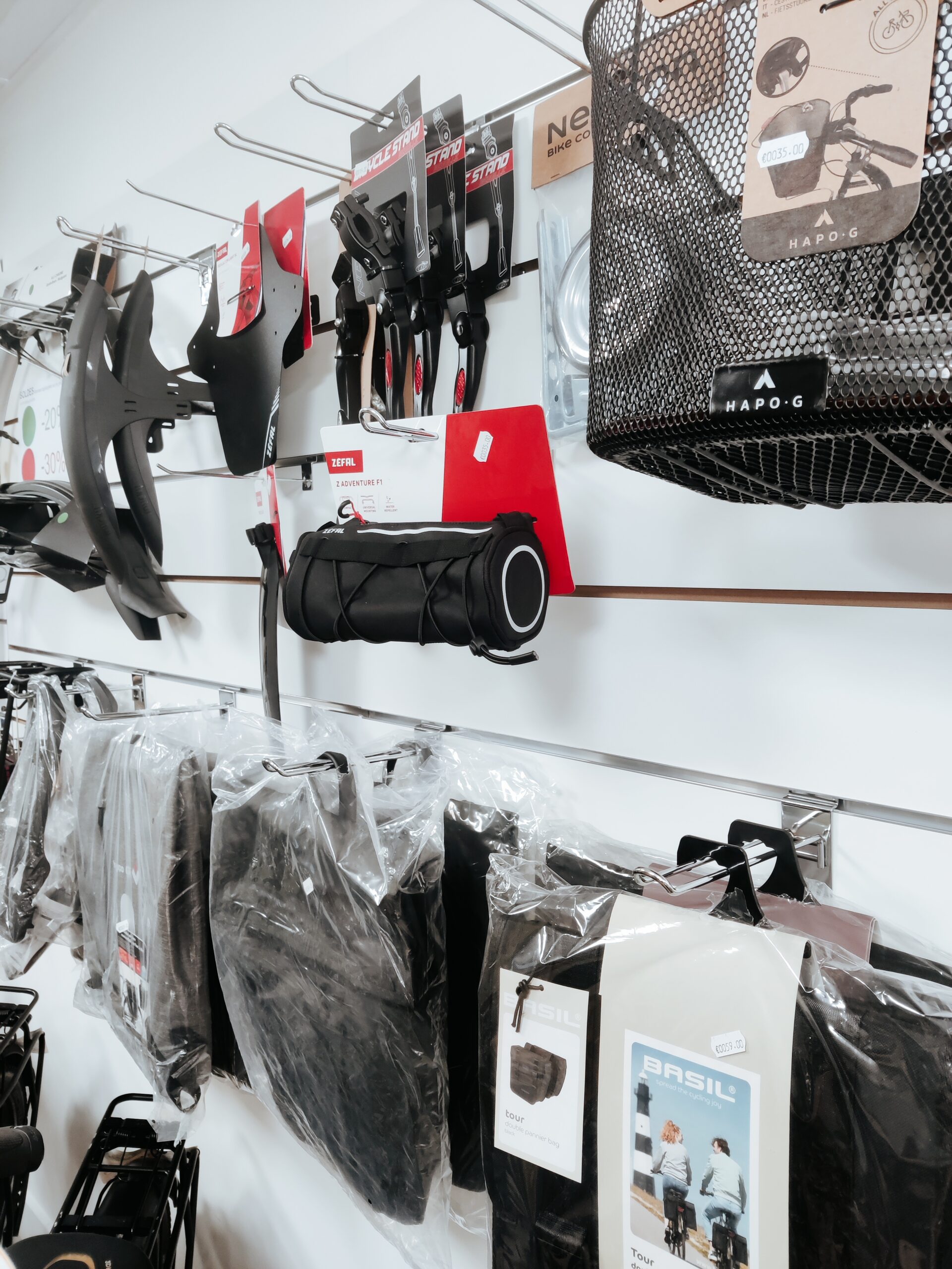 Casques, sacoches, porte-bagages, antivols, éclairages, garde-boues, pompes, chambres à air, pneus, selles, poignées, pédales, petit outillage, guidolines, dérailleurs, chaînes, cassettes de pignons, freins, disques de freins…